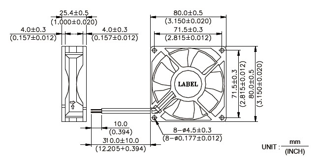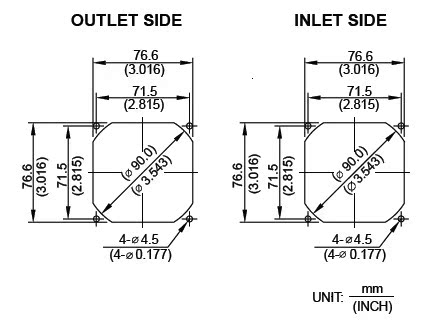 风扇安装尺寸及开孔面板图示:(mm)